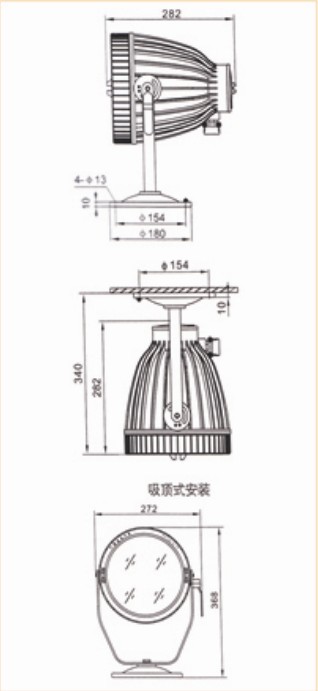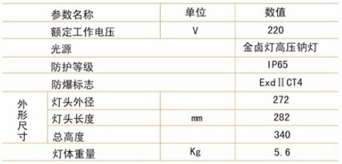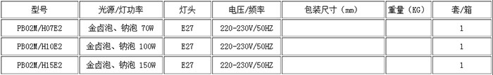 注:該系列標準配置:150W金屬鹵化物燈。也可根據需要配用光源;70W,100W金鹵燈或70W,100W高壓鈉燈。