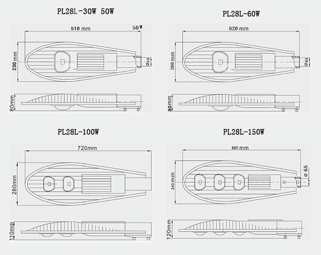 | 型號(hào) | PL28L-30W | PL28L-50W | PL28L-60W | PL28L-100W | PL28L-150W |