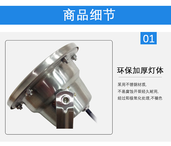 2、一體化精工制作不銹鋼+對流設(shè)計(jì)解決散熱問題,保證光源壽命。