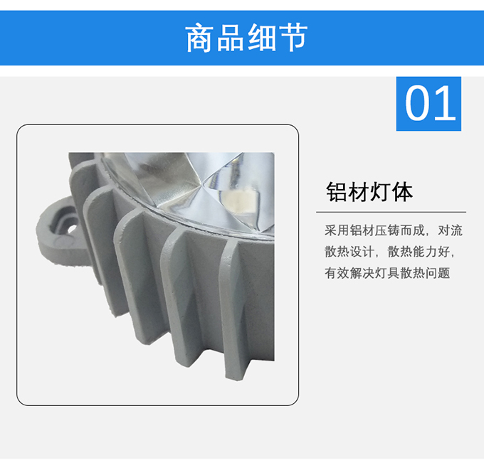1、采用鋁材壓鑄而成,對(duì)流散熱設(shè)計(jì),散熱能力好,有效解決燈具散熱問(wèn)題