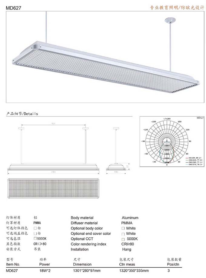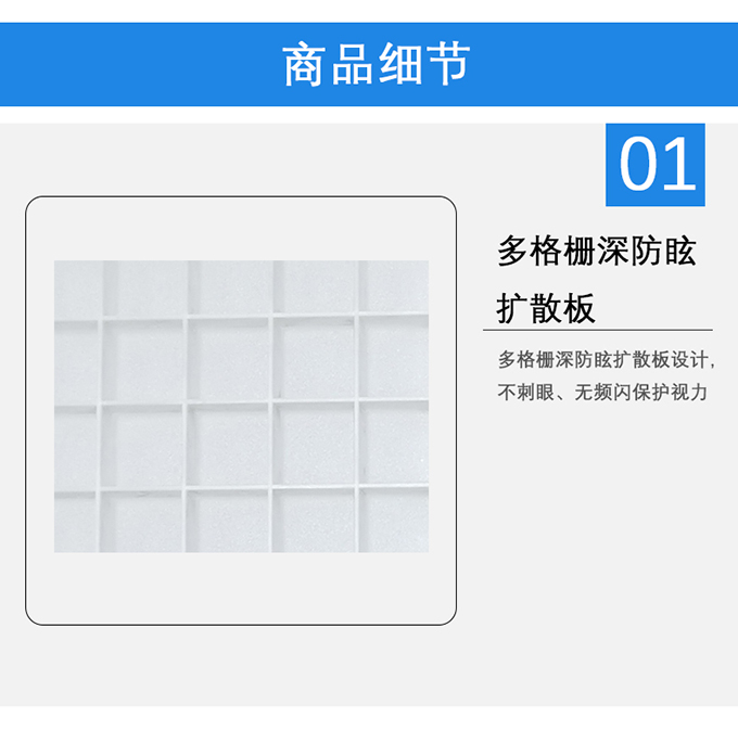 1.多格柵深防眩擴(kuò)散板設(shè)計(jì),不刺眼、無頻閃保護(hù)視力