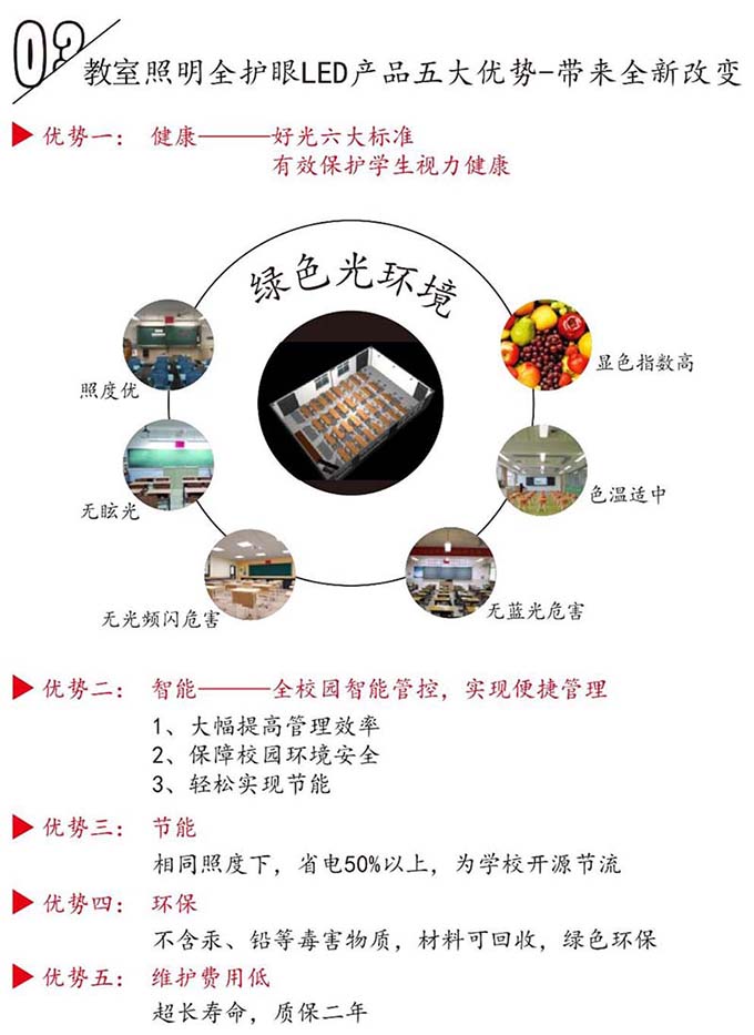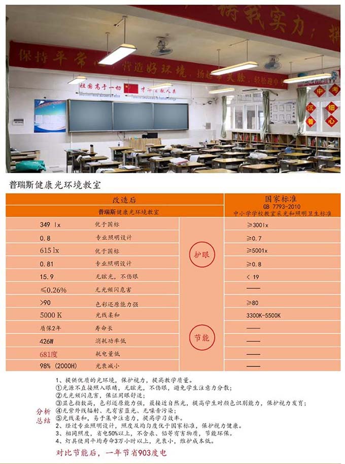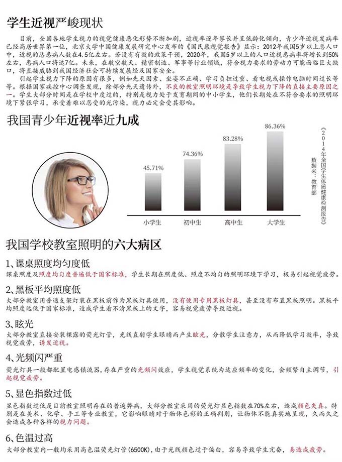 教室燈的燈光顏色更加真實(shí),不刺眼,學(xué)生眼睛很舒適,疲勞度低,不會因?yàn)檠劬ζ诙a(chǎn)生厭學(xué)心理,降低近視率。