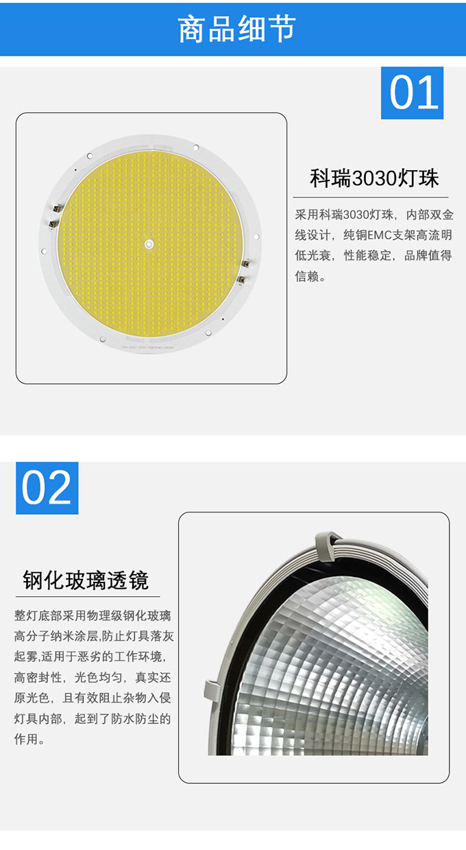 3.高強(qiáng)化玻璃燈罩,堅(jiān)硬面鏡,經(jīng)過(guò)數(shù)十道工序精細(xì)打造,LED投光燈達(dá)到抗壓強(qiáng)、耐高溫、抗腐蝕。