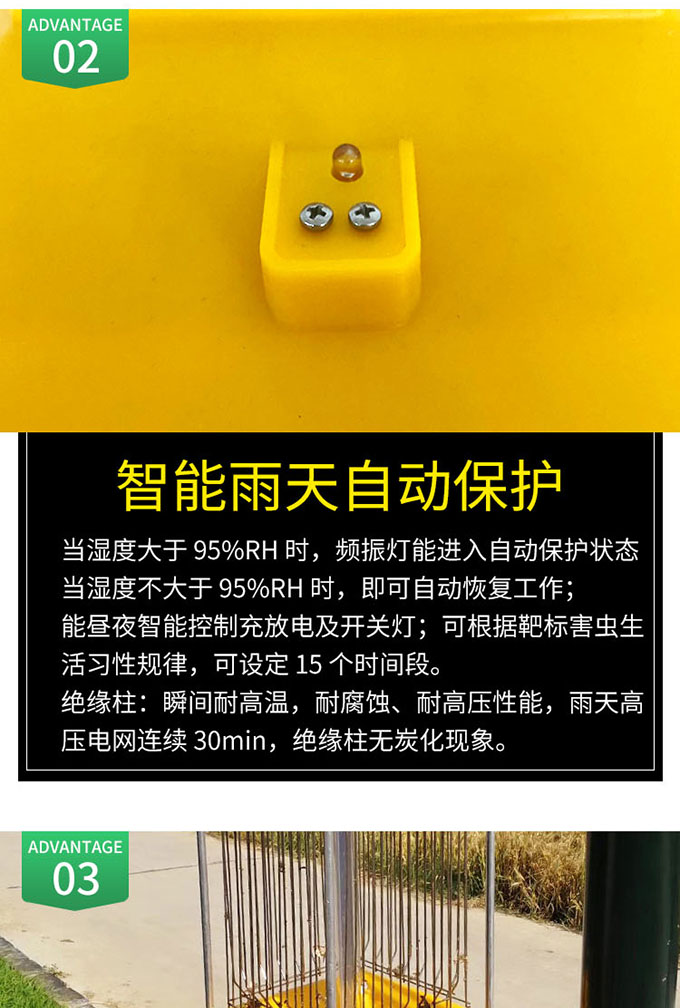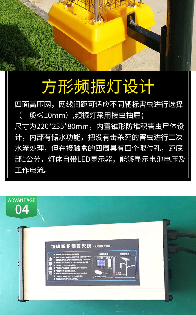 3.方形頻振燈設計,可對害蟲進行二次水淹處理。