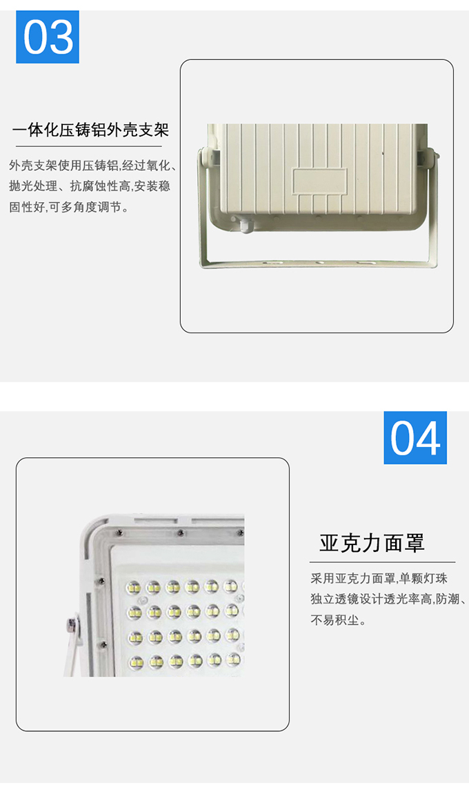 4.外殼支架使用壓鑄鋁,經(jīng)過氧化、拋光處理、抗腐蝕性高,安裝穩(wěn)固性好,可多角度調(diào)節(jié)。