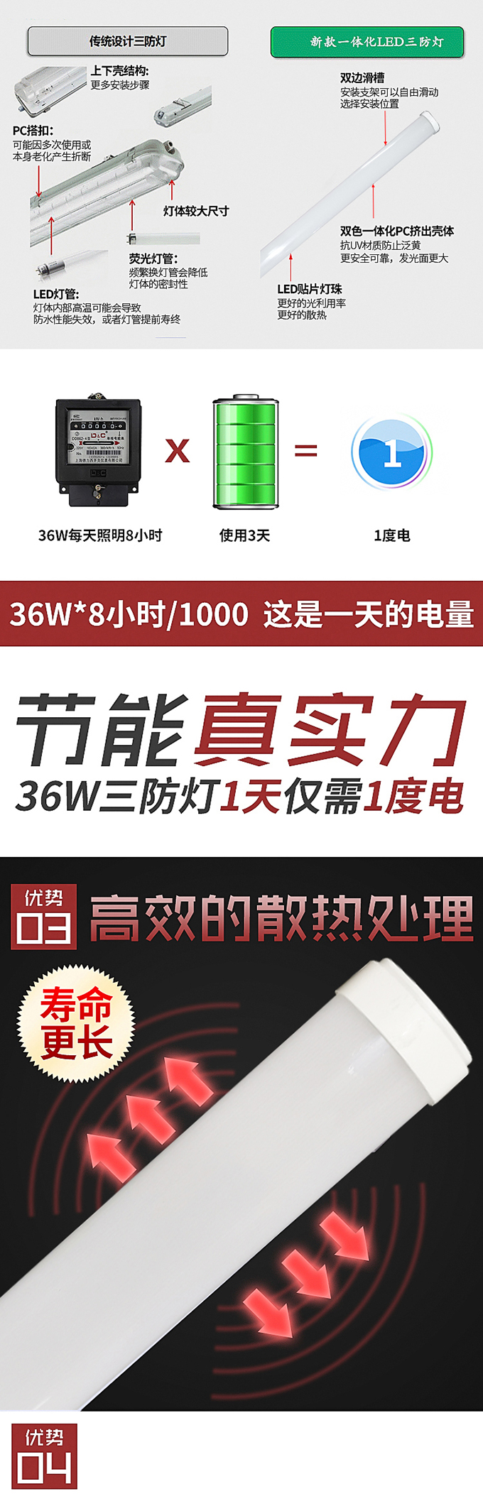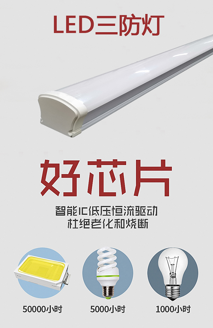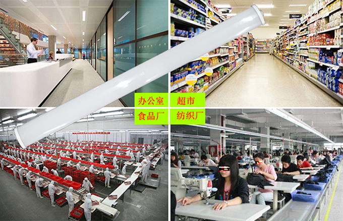 工廠車間、辦公室、食品廠、冷庫、商場、超市、紡織廠、防腐等場所的照明,可完全替代傳統(tǒng)三防燈具。