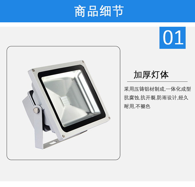 1.采用壓鑄鋁材制成,一體化成型抗腐蝕,抗開裂,防雨設(shè)計(jì),經(jīng)久耐用,不褪色