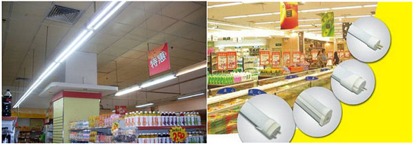 大型超市、商場是最適合應(yīng)用LED照明燈具的場合。節(jié)能效益最明顯,見效時間最快。在沒有政府號召和補貼的情況下,很多大型超市都自發(fā)更換了LED照明燈具,如:濟南沃爾瑪超市原來采用的GE T5熒光燈已經(jīng)全部改成了LED燈管,蘇寧超市主照明也全部更換成了LED燈管;這些商場改造后節(jié)能效益明顯,電費直線下降,降低了運營成本,增強了企業(yè)的競爭實力。